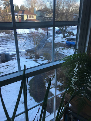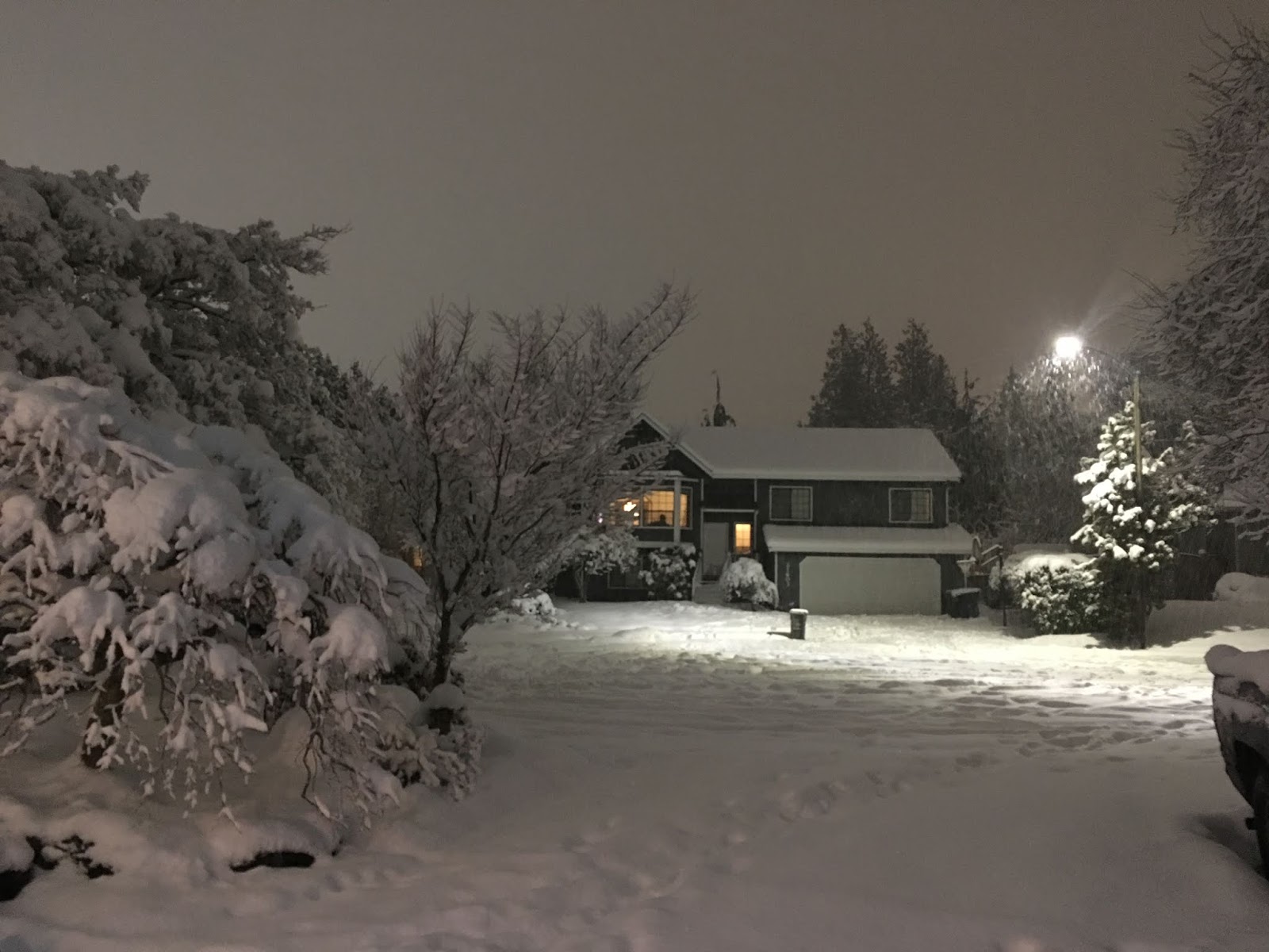 The snow system kept on coming and our church cancelled services for Sunday because of the steep hills to try to get up to get to the building AND an even more precarious concern of stopping at the light at the bottom of the grade when driving back home. So we stayed home and stayed safe.